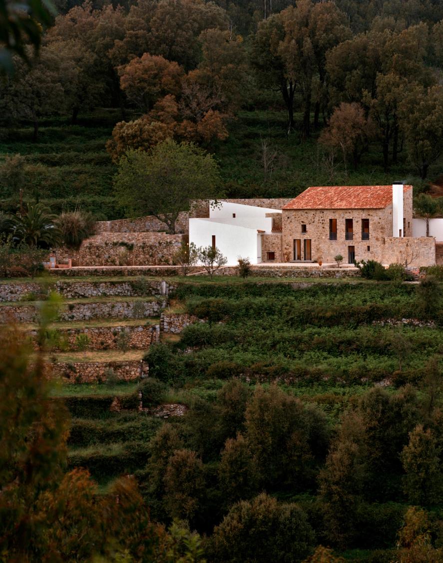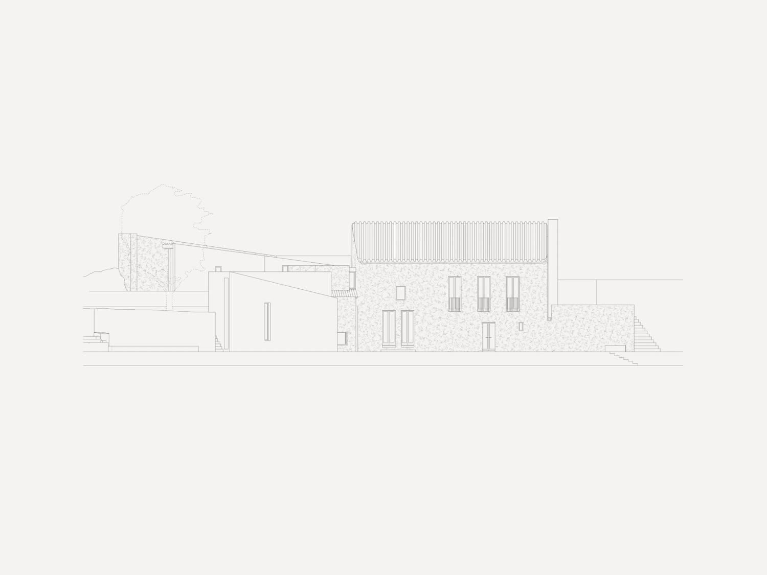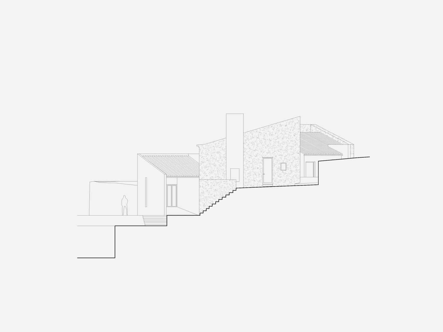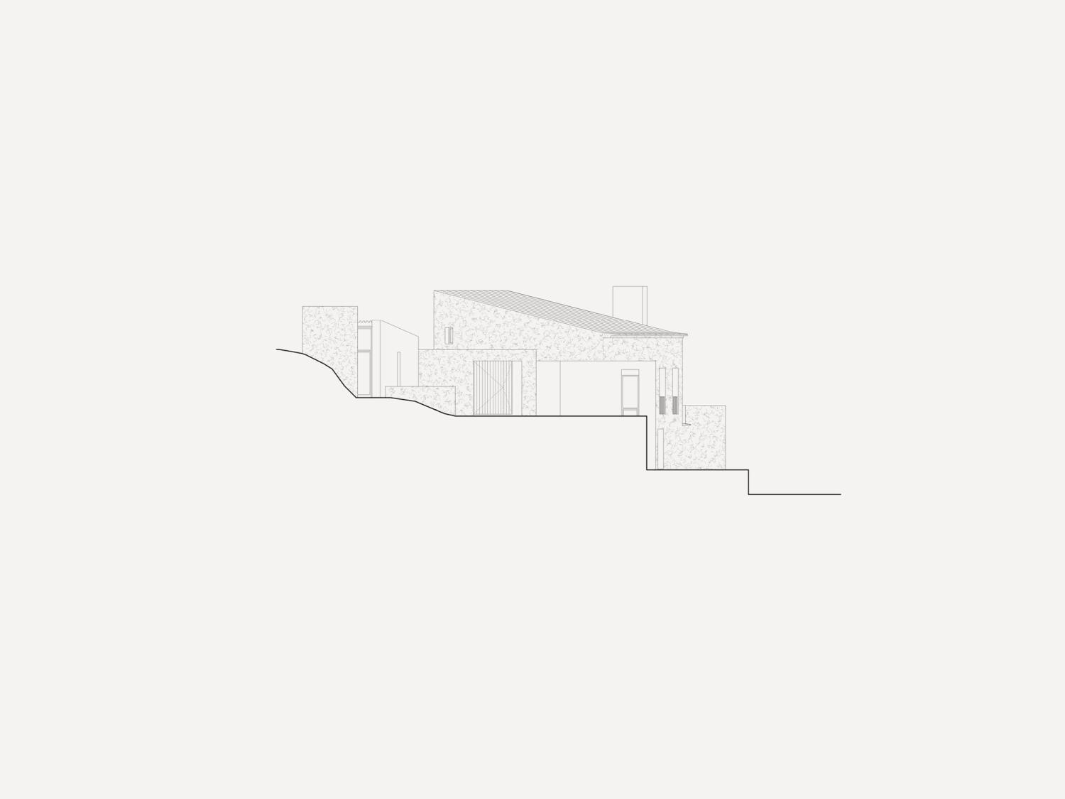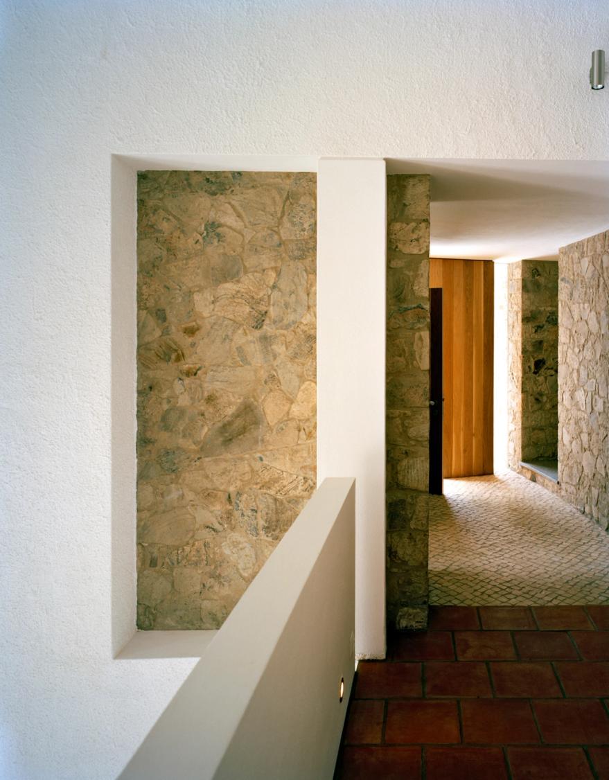 Located in the mountains of southern Portugal, this project is the restoration, conversion and extension of a traditional stone quinta. The intention was to make the spatial sequence of the house an intensified, abstracted distillation of the surrounding landscape: chasm, ledge and cave. The footprint of the original ruined farmhouse was used for a new box-like stone building that forms the heart of the house.