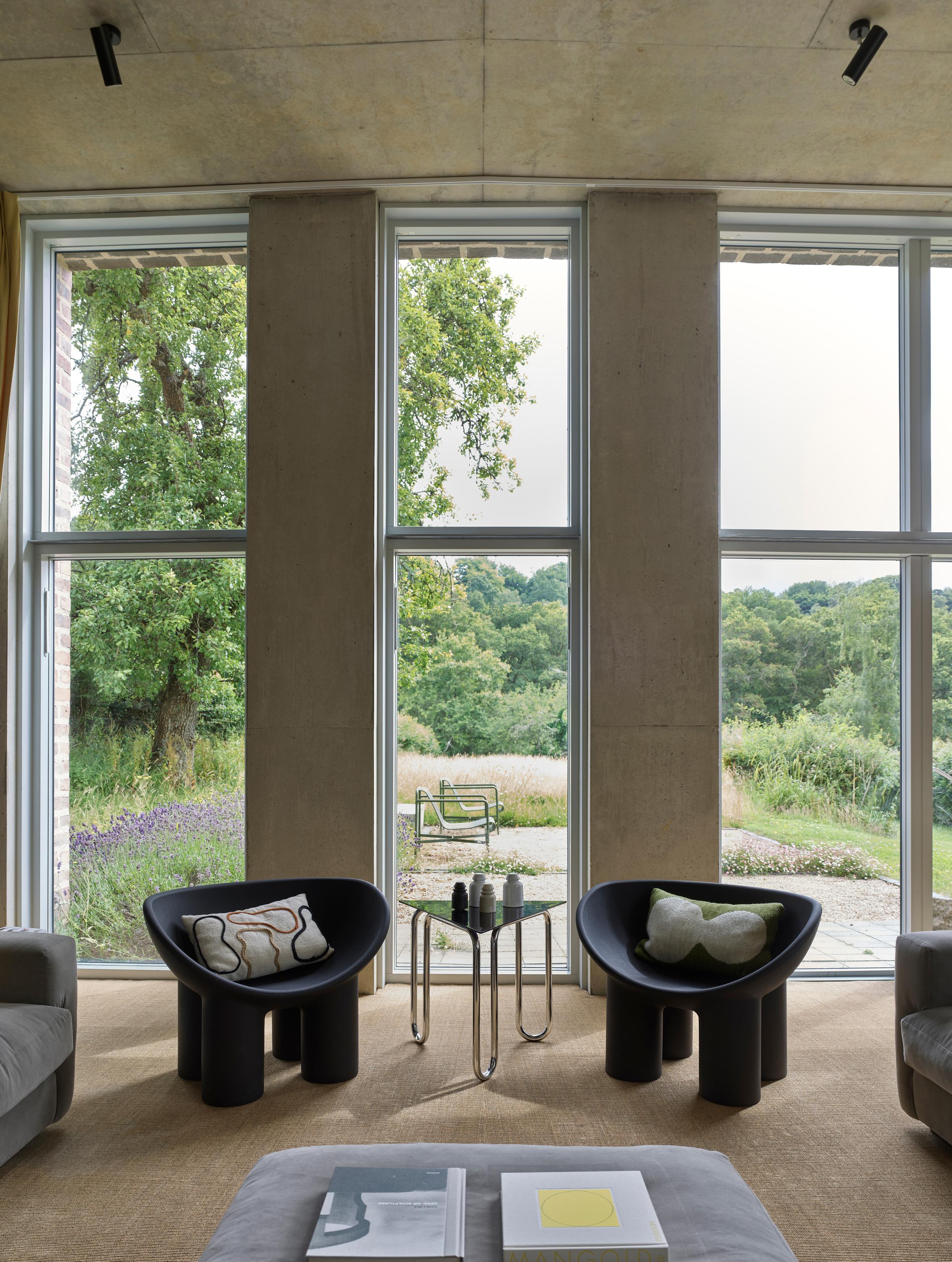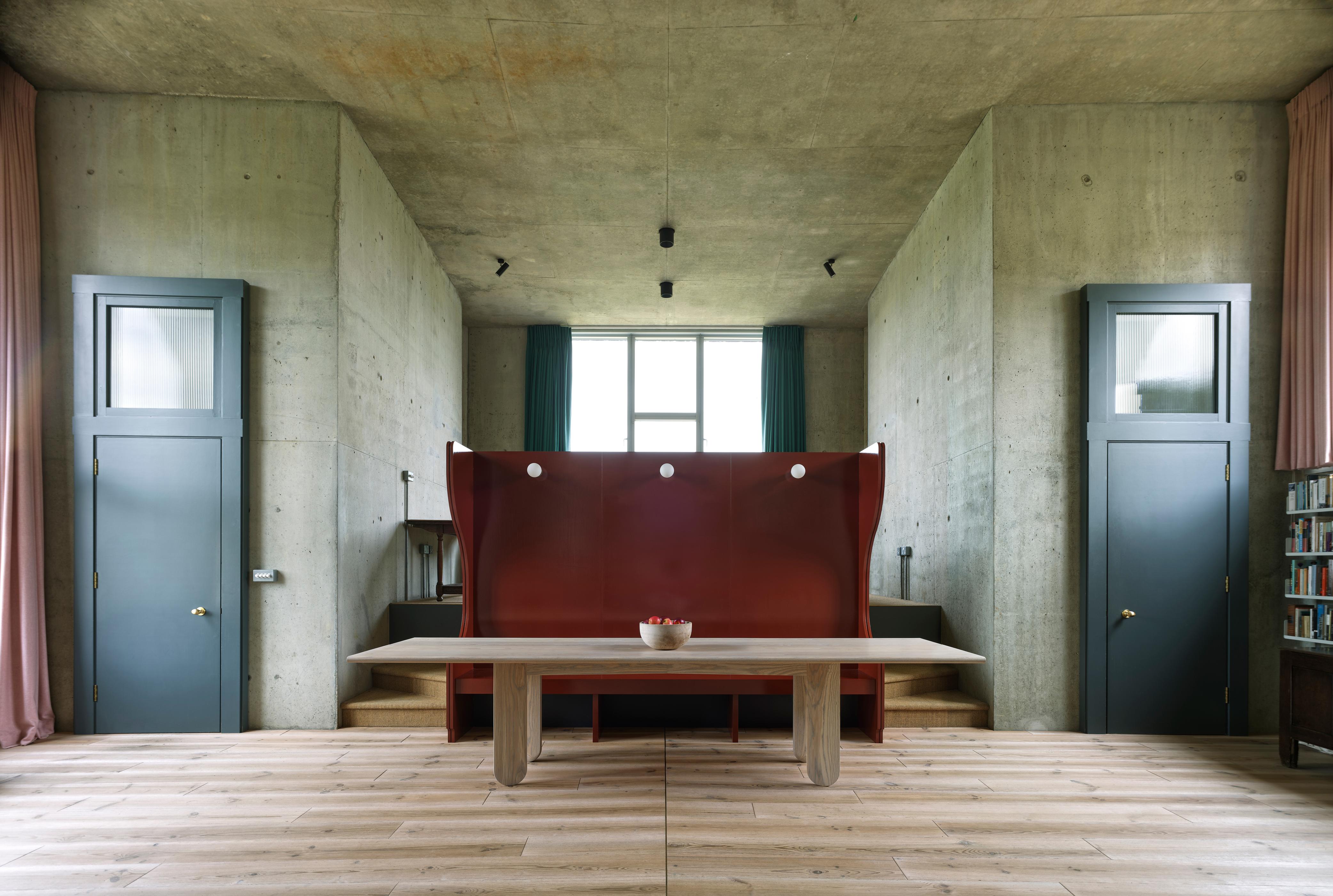 A dark, labyrinthine passage leads to the light-filled sitting room, exaggerating its impact. Internally the exposed structural concrete walls and ceilings are left deliberately rough-and-ready: just as they came out of the formwork.