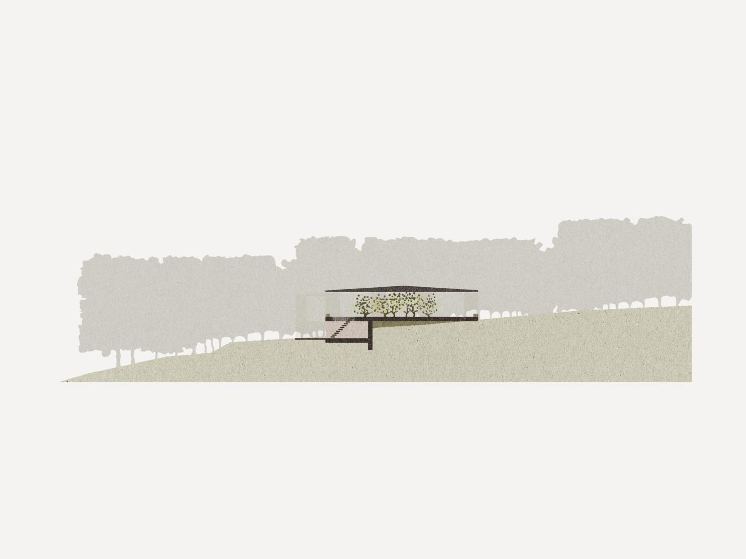 Sometimes spaces gain their power through proximity to their opposites: inspired by Uccello’s ‘Hunt in the Forest’ and Cy Twomby’s painting ‘Blue Ridge Mountains Transfixed by a Roman Piazza’, we proposed a courtyard almost like a public square. It is surrounded on three sides by the three pavilions that make up the house, and the fourth side is formed by the darkness of the surrounding woodland: nature and civilisation brought into uneasy proximity. The character of the proposal could be described as a very loose combination of Alvar Aalto’s Saynatsalo town hall and the 1960s Long Island houses of Norman Jaffe.